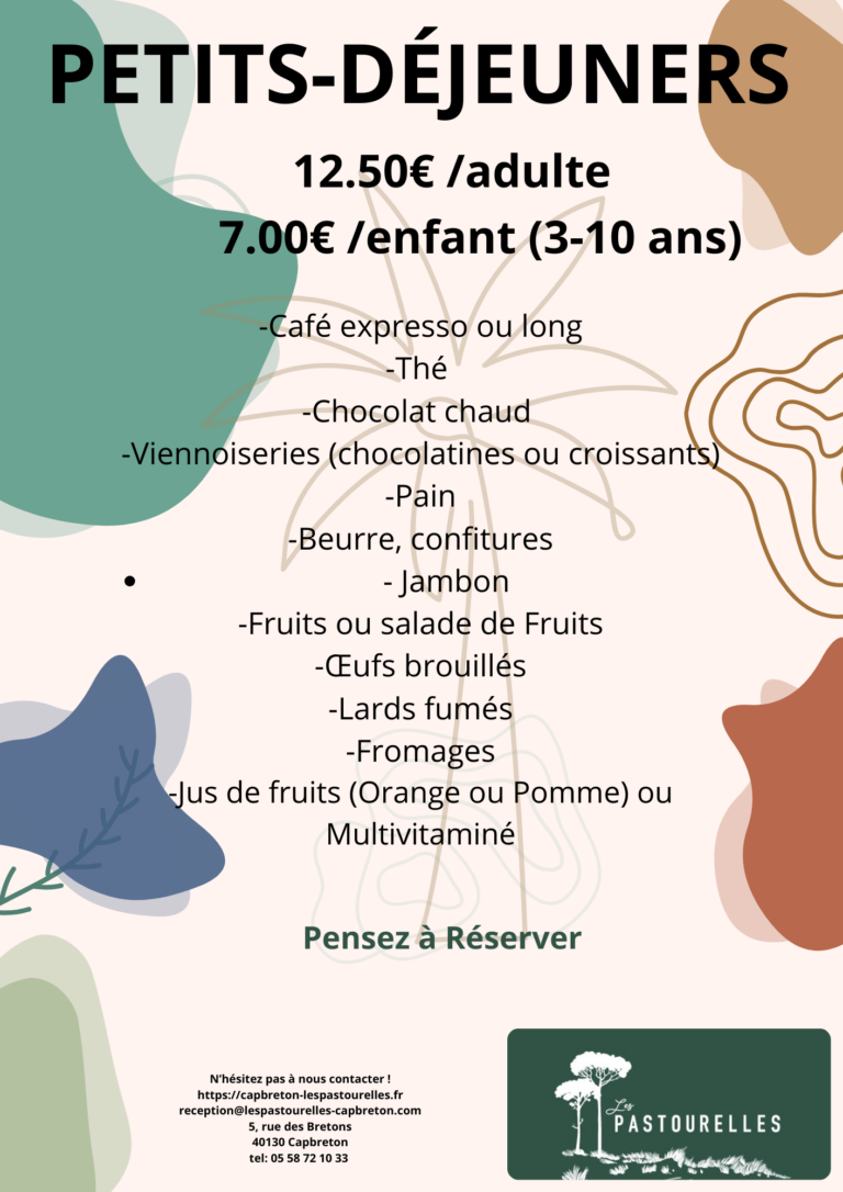 Contactez-nous : +33 (0)5 58 72 10 33 - reception@lespastourelles-capbreton.com